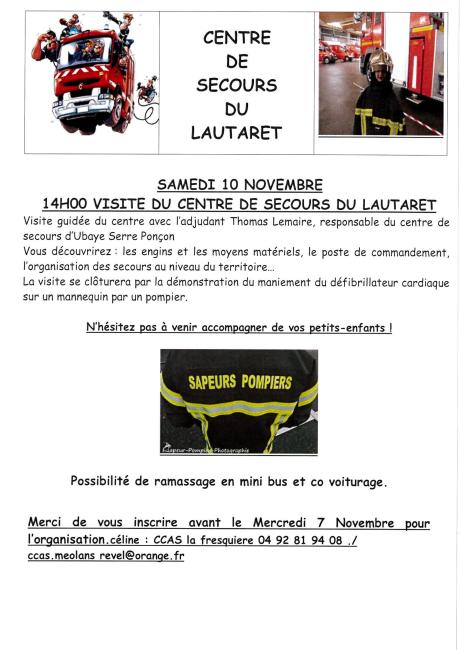 31 octobre 2018 Documents Document VISITE DU CENTRE DE SECOURS DU LAUTARET Infos pratiques Mairie du Lauzet-Ubaye 04 92 85 51 27 Nous contacter A ne pas manquer Actualités Evénements