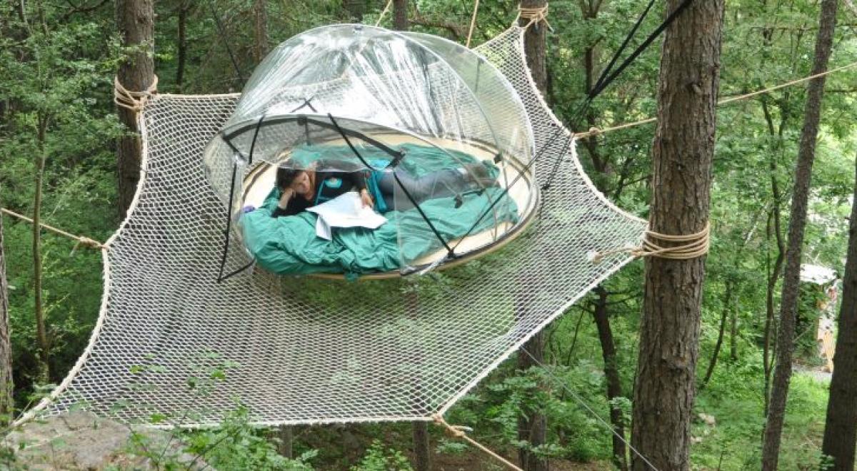 Dormez dans une bulle transparente en flottaison dans les arbres à 3 mètres au-dessus du vide !