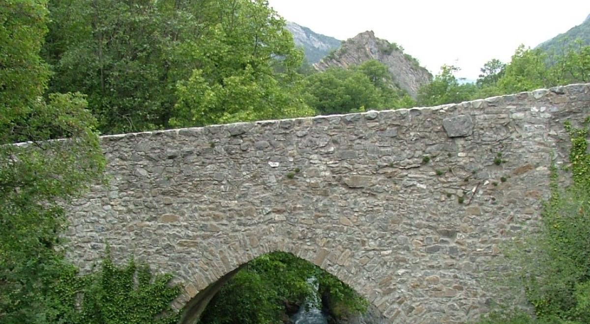 Dit Romain, ce pont est en fait roman. Il assurait la liaison entre l’Abbaye de Boscodon et le Laverq. Ces deux lieux de culte faisaient partie de l’ensemble des abbayes chalaisiennes. Selon la règle de Saint Benoit, les moines chalaisiens vivent séparés du monde et ne s’intègrent pas à la vie des paroisses. Les 1ers moines sont des ermites installés à Chalais (Voreppe, contreforts de la Grande Chartreuse, Isère) en 1101 par l’Evêque de Grenoble. Ils se consacrent aux travaux forestiers et à l’élevage ovin.